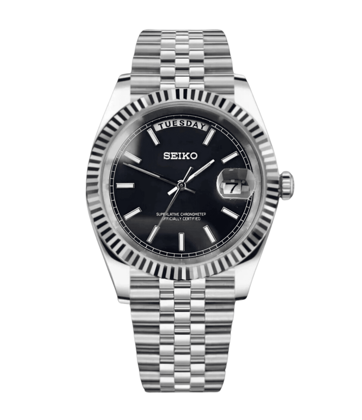 Experience the sophistication of a classic Day-Date timepiece reimagined through the craftsmanship of a modern Seiko mod. This custom build blends luxury-inspired aesthetics, premium materials, and dependable Japanese engineering—creating a watch that makes a bold statement every day.