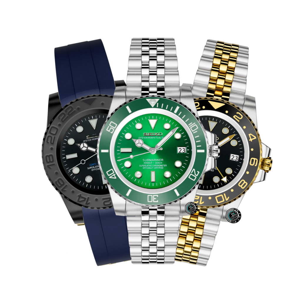 The Seiko Mod Submariner is the ultimate blend of iconic design and personalized craftsmanship. Inspired by the legendary Rolex Submariner, this timepiece brings together timeless elegance, robust durability, and the precision of Seiko’s renowned movements. Whether you’re drawn to classic black dials, bold color accents, or premium materials, our configurator lets you create a fully customized Seiko Mod Submariner tailored to your vision.